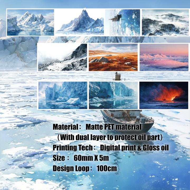 Discover the subtle, quiet beauty of a winter field at dawn. This PET tape focuses on the delicate details: frost-tipped grasses, a thin layer of ice over vegetation, and the soft, early morning light casting long shadows. It’s an exquisite background tape for creating a sense of tranquil stillness, perfect for nature journaling, atmospheric spreads, and adding a layer of delicate texture to your craft projects.