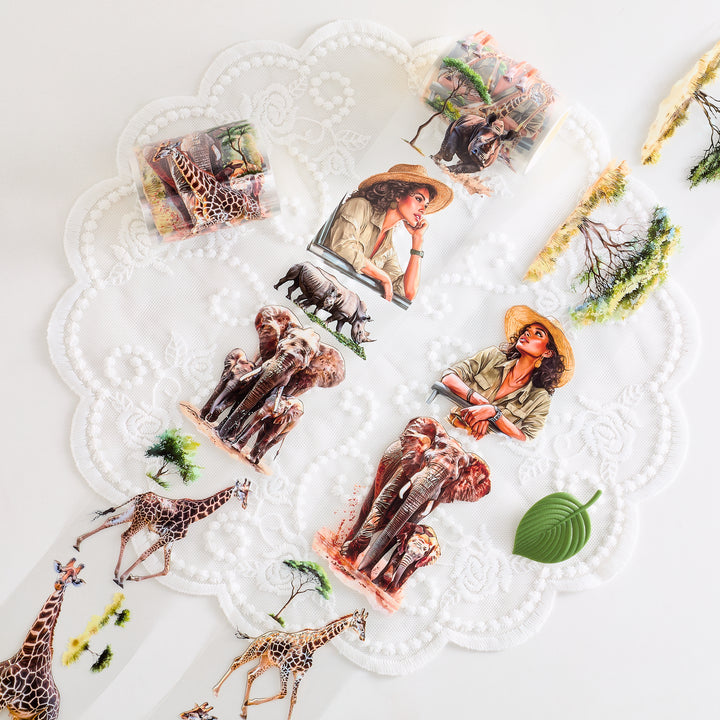 Featuring adorable giraffe, elephant, and rhinoceros designs frolicking around trees. This tape is perfect for all your crafting and decorating needs, adding a touch of whimsy to any project. Get your hands on this unique and fun tape today!