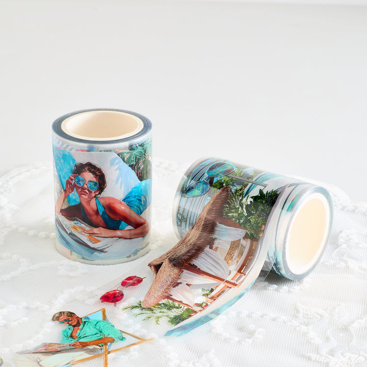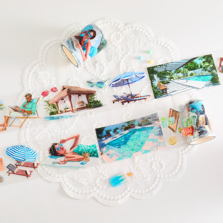 A perfect accessory for your summer vacation projects. This tape captures the essence of sunny days and relaxation, making it ideal for scrapbooking, journaling, or any creative endeavor that celebrates the joys of summer. With vibrant colors and playful designs inspired by sunbathing themes, this PET tape adds a touch of warmth and fun to your crafts. Whether you’re creating beach-themed decorations or simply adding flair to your daily notes, this tape is a must-have for anyone looking to embrace the spirit of summer.